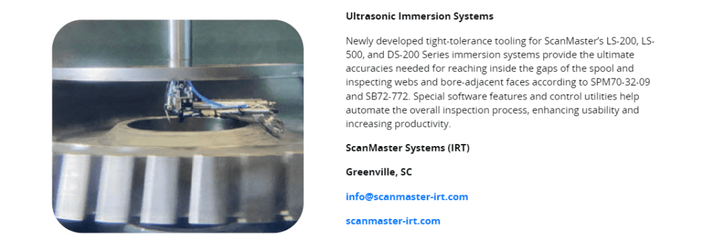 See the publication of our Newly Developed tight-tolerance tooling for ScanMaster’s Immersion systems on page 7 of the ASNT NDT Marketplace product guide: