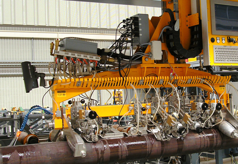 The AS-200S Systems are designed to inspect Spiral Submerged Arc Welded (H-SAW) Pipes, including the strip, weld, pipe body and Heat Affected Zone (HAZ). The systems may be integrated as strip inspection, online inspection right after the welding process and offline inspection as a final pipe test, and can be set up using a variety of ultrasonic configurations, according to the specific inspection requirements.